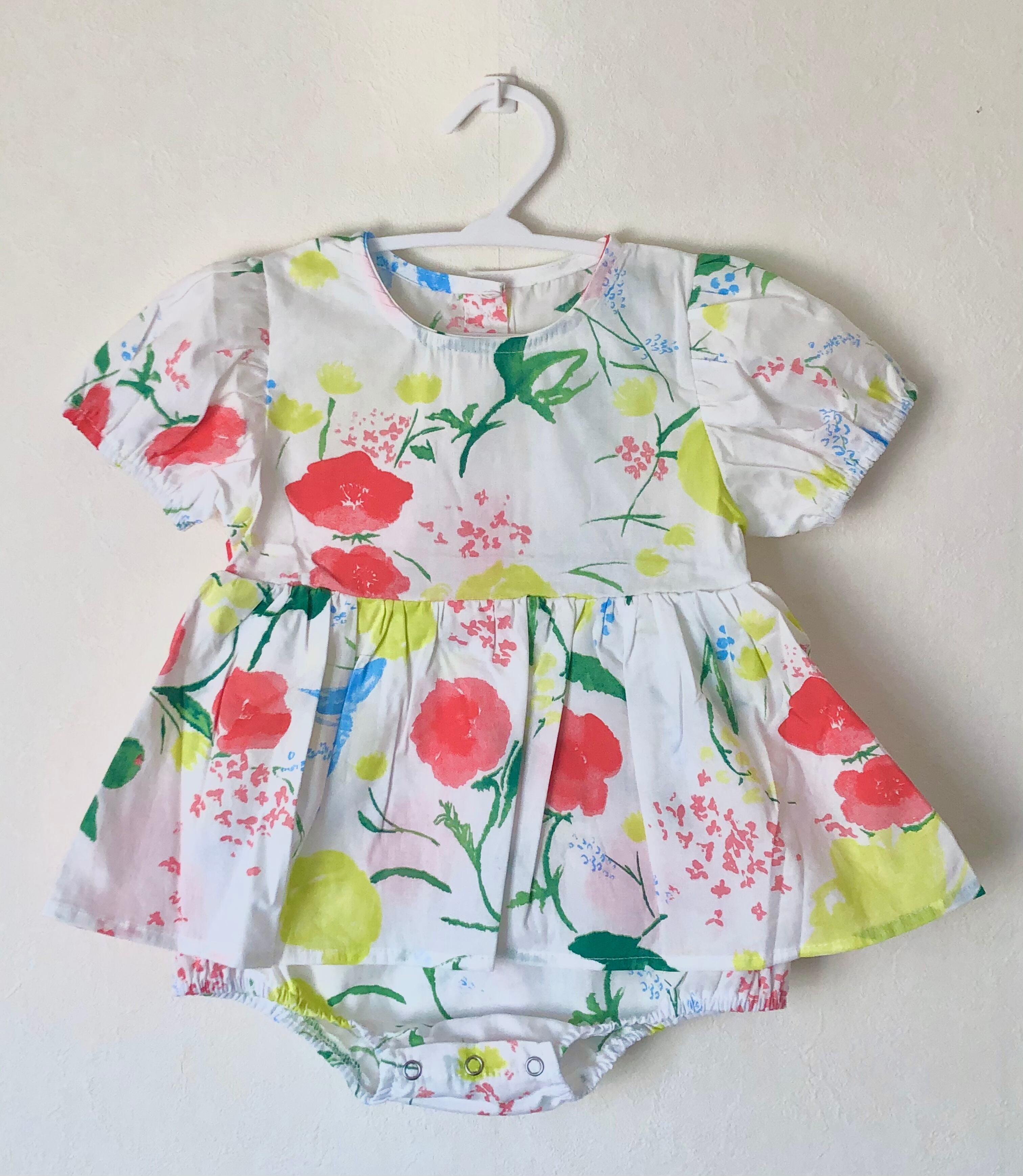 帽子付きの花柄ワンピースです。